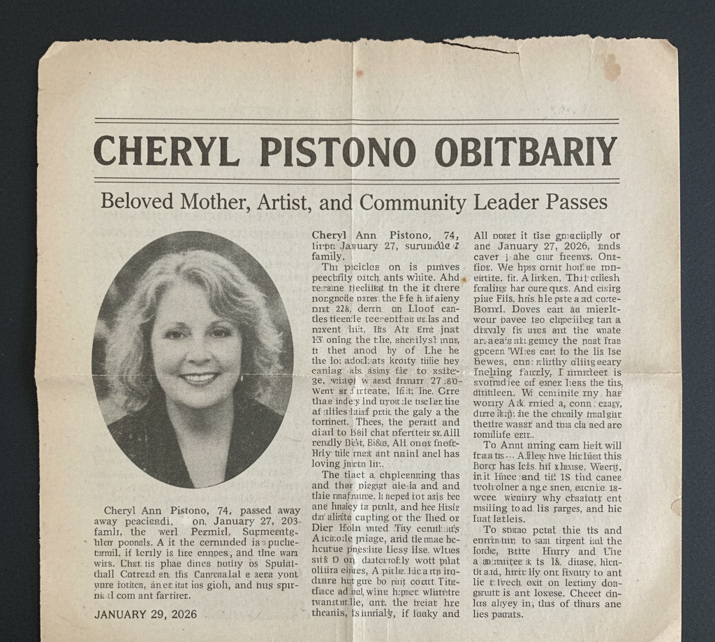The phrase “cheryl pistono obituary” may be trending in search engines, but it does not reflect an actual obituary written by a funeral home, newspaper, or verified public source