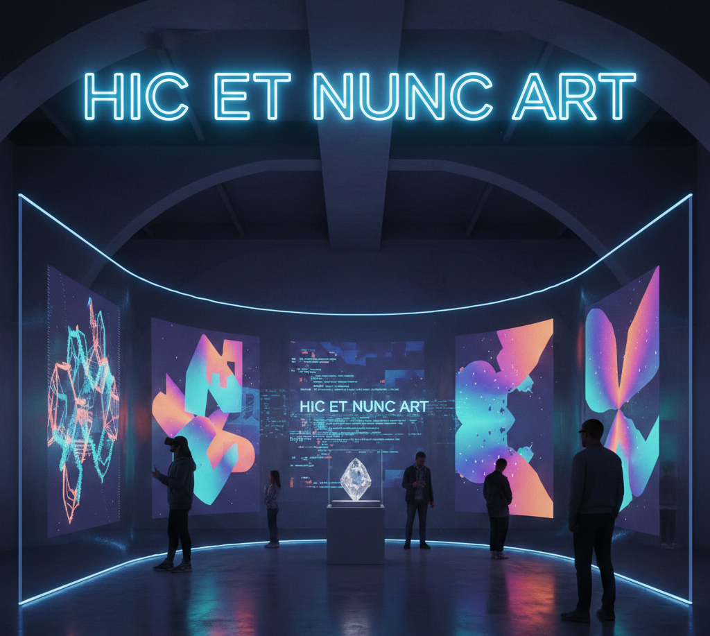 Hic et Nunc was a decentralized NFT marketplace launched in March 2021 on the Tezos blockchain. The name “Hic et Nunc” is Latin for “here and now,” reflecting its focus on immediacy and present-moment creativity.